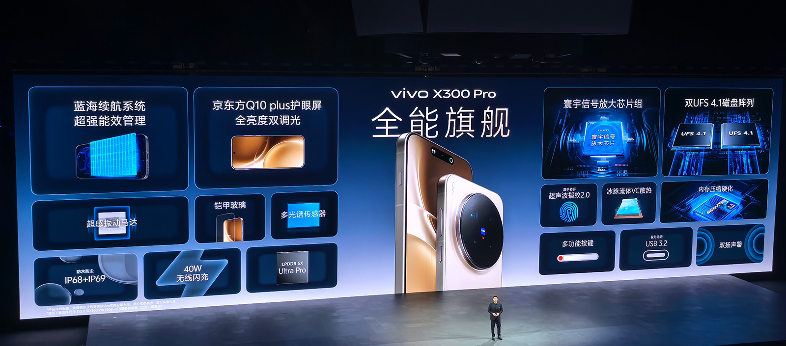 通過搭載全場(chǎng)景信號(hào)增強(qiáng)芯片,vivo X300 Pro的通信能力獲得更強(qiáng)保障。該機(jī)電池容量6510mAh,與X300一樣提供90W有線快充和40W無線快充,兩款機(jī)型配備USB 3.2以及3D超聲波屏幕指紋識(shí)別。