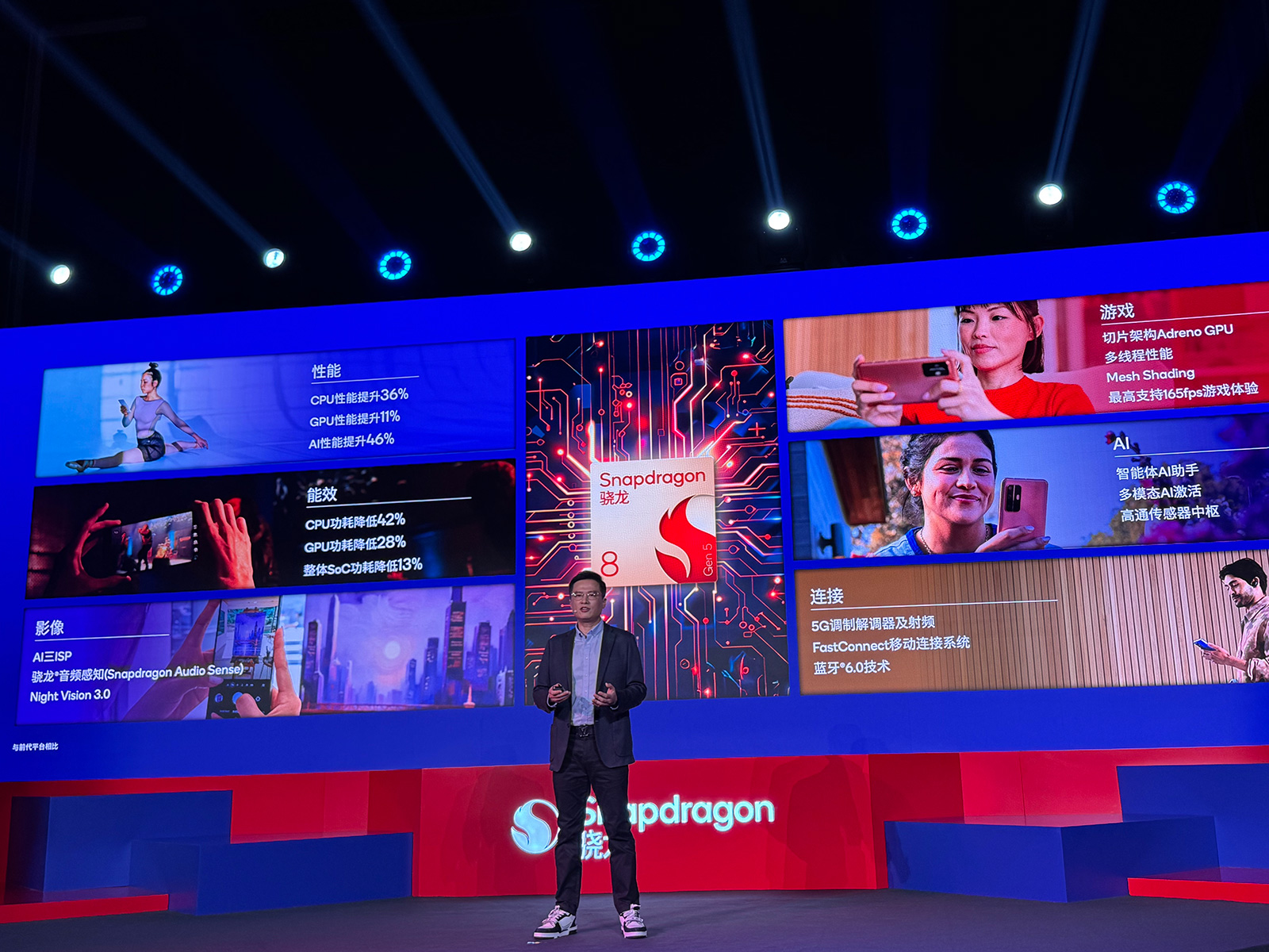 圖形性能方面,第五代驍龍8搭載的Adreno GPU相比上代產(chǎn)品,性能提升11%,功耗領(lǐng)先28%。另外,第五代驍龍8的整體AI性能大漲46%。