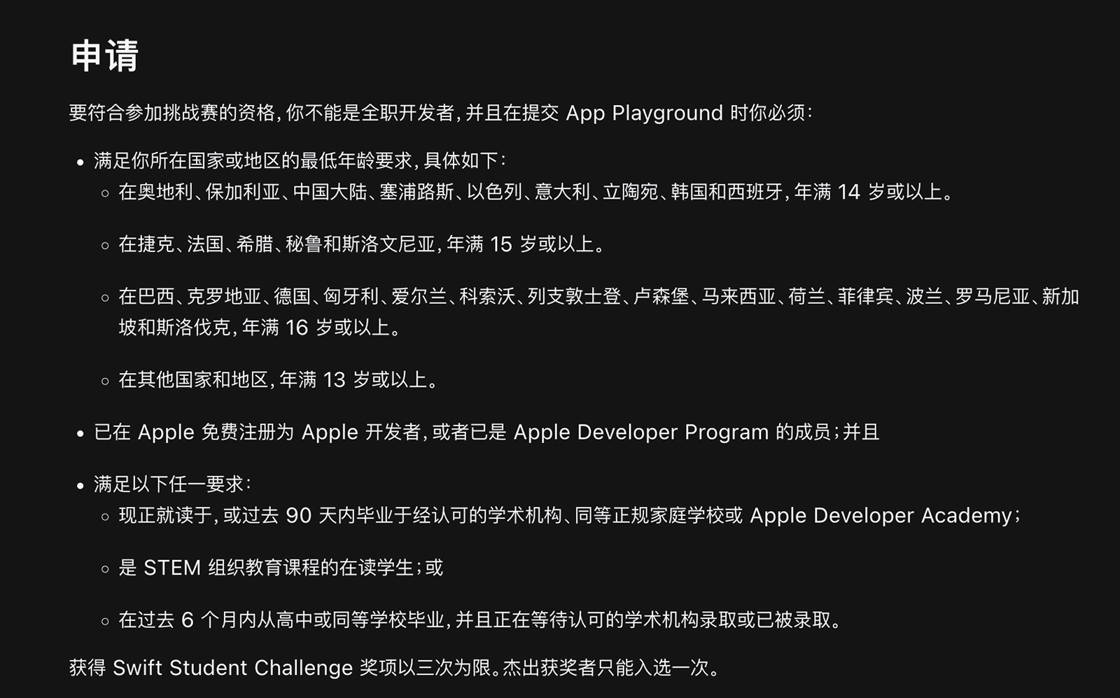 近日,蘋果正式開放2026 Swift語(yǔ)言學(xué)生編程競(jìng)賽“Swift Student Challenge”的申請(qǐng),2月6日至2月28日期間全球各地符合資格的學(xué)生可參賽提交挑戰(zhàn),詳情可參閱蘋果開發(fā)者網(wǎng)站。
