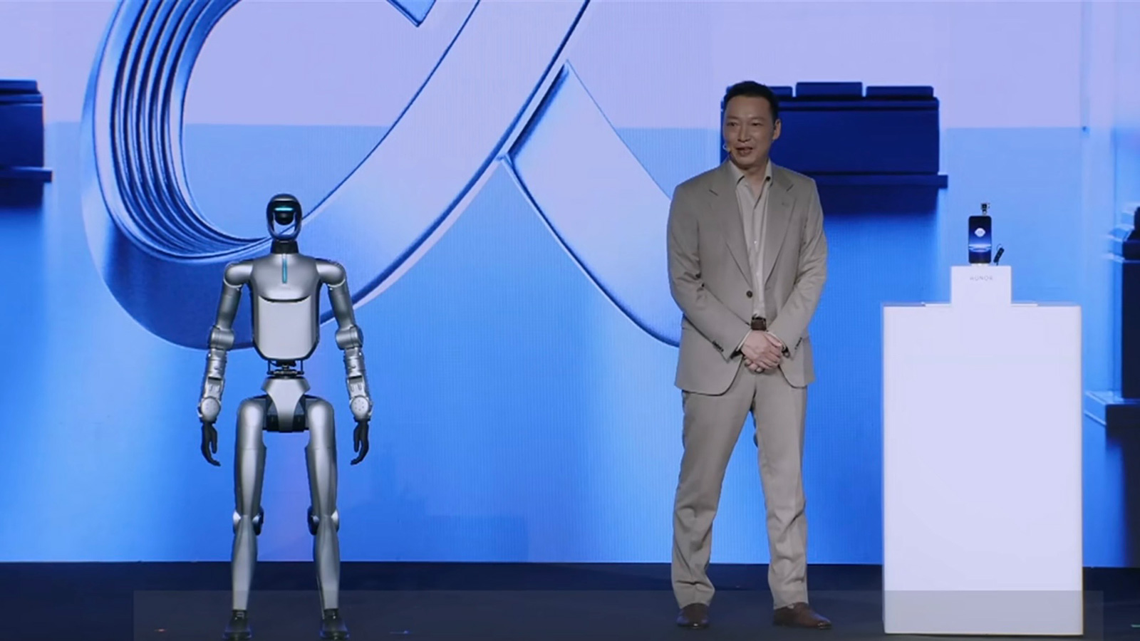 先說說更受矚目的榮耀Robot Phone,現(xiàn)場(chǎng)演示的真機(jī)其實(shí)與去年在國(guó)內(nèi)展出的模型機(jī)改動(dòng)不大,榮耀CEO李健親自公布了這款重磅產(chǎn)品的眾多細(xì)節(jié)。從官方視頻看,榮耀Robot Phone的旋轉(zhuǎn)攝像頭采用橫向側(cè)滑保護(hù)蓋,需要手動(dòng)側(cè)滑開啟。旋轉(zhuǎn)鏡頭打開時(shí)是自動(dòng)翻轉(zhuǎn),不過開啟速度似乎偏慢。