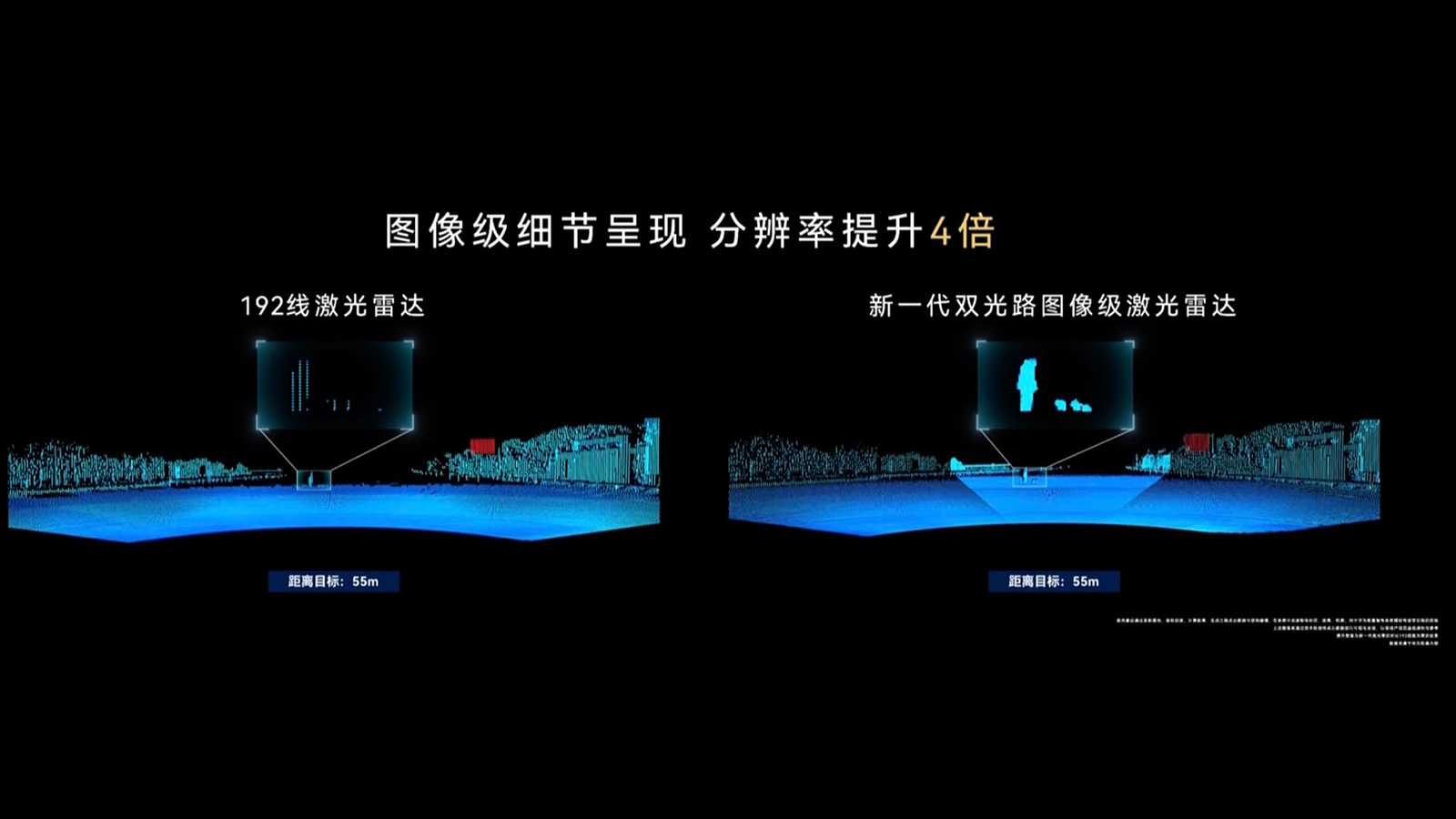 全新華為896線激光雷達首創(chuàng)雙光路架構(gòu),一體雙焦,實現(xiàn)超精準、超高清、超遠距的感知能力升級。相比此前的192線激光雷達,新款雷達分辨率提高4倍,帶來更清晰細節(jié)識別,異形障礙物識別率提升高達77%。