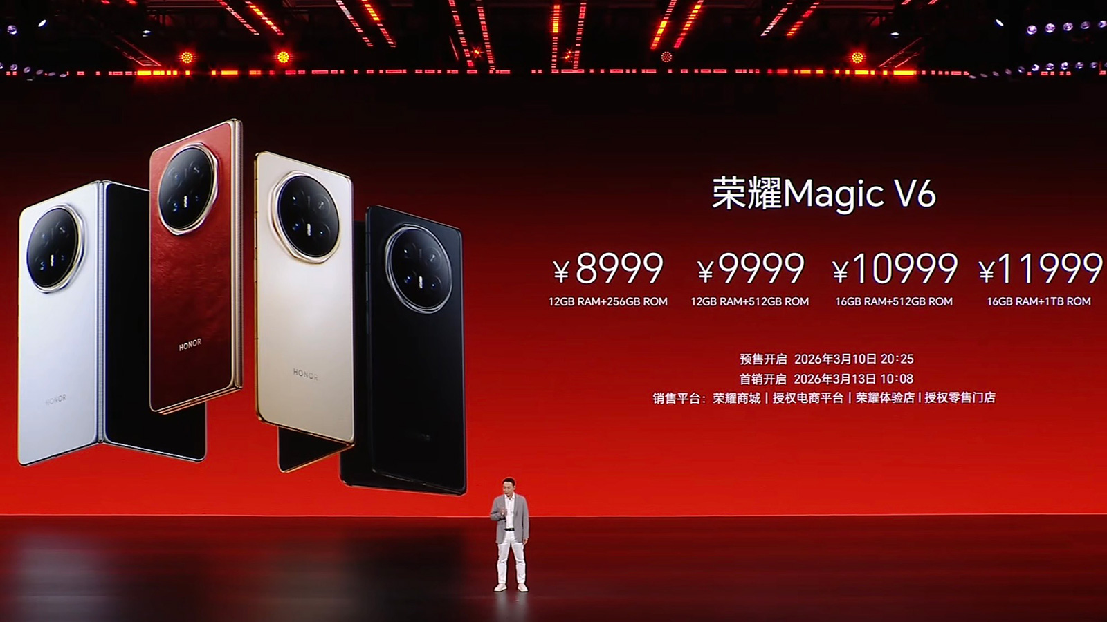 3月10日晚,榮耀在深圳舉辦新品發(fā)布會,正式在國內(nèi)市場推出新一代折疊屏旗艦榮耀Magic V6,號稱“折疊屏大滿貫”,是藝人謝霆鋒、米蘭冬奧冠軍夫妻徐夢桃和王心迪同款。榮耀Magic V6的16GB內(nèi)存版本價(jià)格相比上代機(jī)型上漲1000元,電池容量相比海外版有小幅度增加。