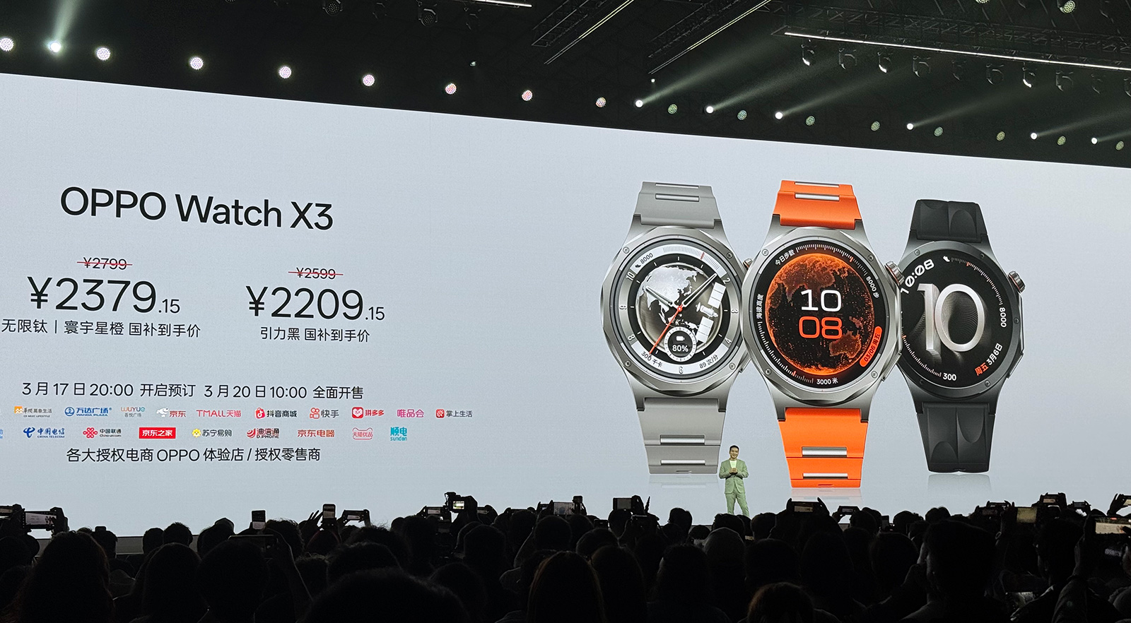 新一代OPPO旗艦手表OPPO Watch X3以全鈦打造,相比上代更輕薄,圓形表盤(pán)增加棱邊處理,更顯個(gè)性。這款手表的OPPO Watch X3定價(jià)2599元起,可享受?chē)?guó)補(bǔ)優(yōu)惠,也有三款顏色選擇,首銷(xiāo)期贈(zèng)送氟橡膠貼素皮表帶(價(jià)值249元)。添加科客公眾號(hào)kekebat,獲取更多精彩資訊。