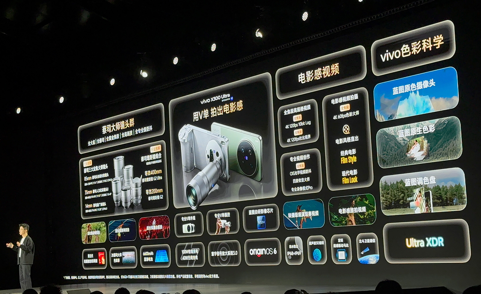 在vivo X系列春季新品發(fā)布會(huì)上,vivo副總裁、產(chǎn)品副總裁黃韜和vivo X系列產(chǎn)品高級(jí)總監(jiān)趙典多次強(qiáng)調(diào)“鏡頭群”和“全焦段”。vivo X300 Ultra后置三顆旗艦級(jí)蔡司主攝,搭配兩款蔡司增距鏡,組成全黃金焦段、全大底、全蔡司、全高畫質(zhì)、全專業(yè)級(jí)防抖的“五全”蔡司大師鏡頭群。14mm-400mm全焦段直出2500萬像素照片,以及全焦段高規(guī)格視頻的拍攝支持,是這一代vivo超大杯旗艦的十足底氣。