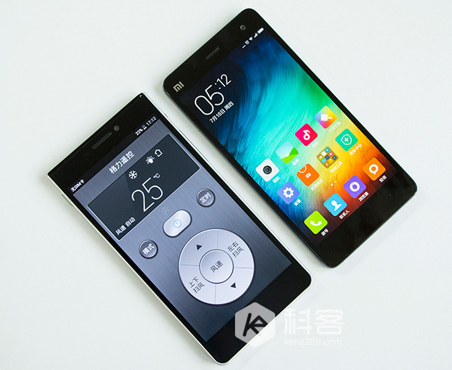 機身右側(cè)上方排列著一個圓圓的按鍵和音量鍵。這個圓圓的按鍵是什么呢?別的手機竟然都沒有!科客輕輕一按,居然調(diào)出了類似遙控器的界面。原來,這是遙控按鍵啊。